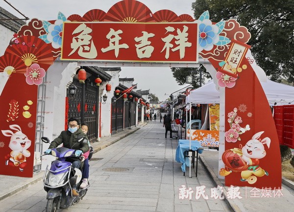 2023年新春佳节假期今天开启,趁着晴好天气,在金山枫泾古镇,当地居民和游客纷纷前往枫泾三桥和南镇非遗文化展示区域等初休闲娱乐,在造型各异的生肖兔陪伴下,感受民俗文化“嘉年华”的魅力。