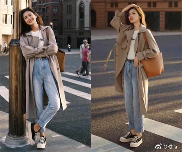 在搭配方面大家更不需要担心了,就算是搭配牛仔裤也能体现出时尚感,你如果比例不是特别好的话,可以选择一件中长的风衣搭配。九分的直筒牛仔裤凸显出大长腿的同时又会显得很简约和大气。