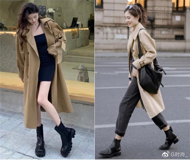 卡其色风衣搭配上马丁靴,这也能够凸显出时尚感。靴子的搭配还蛮帅气的,当他和风衣结合起来则能够更好的提升气场,非常适合小个子哦。
