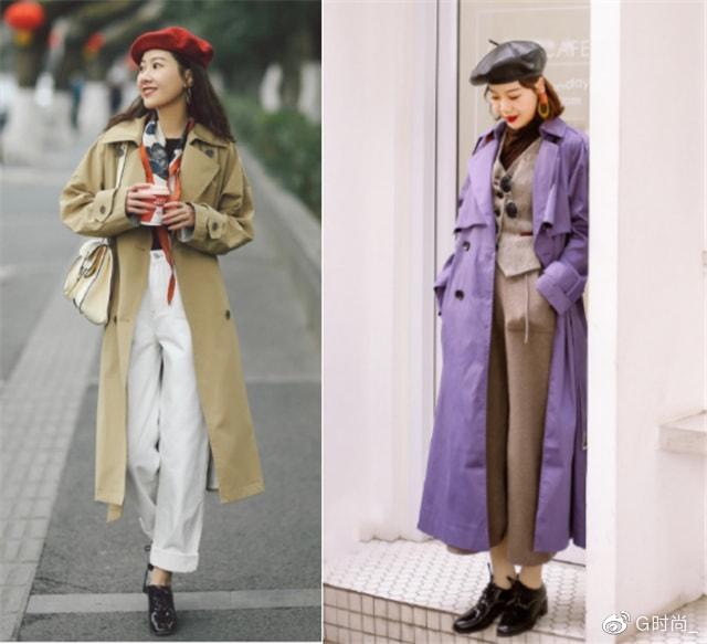 高腰的直筒裤去搭配上时尚的长款风衣,看上去的确很清爽。卡其色风衣和白色直筒裤的结合,简约利落,紫色风衣搭配上了。