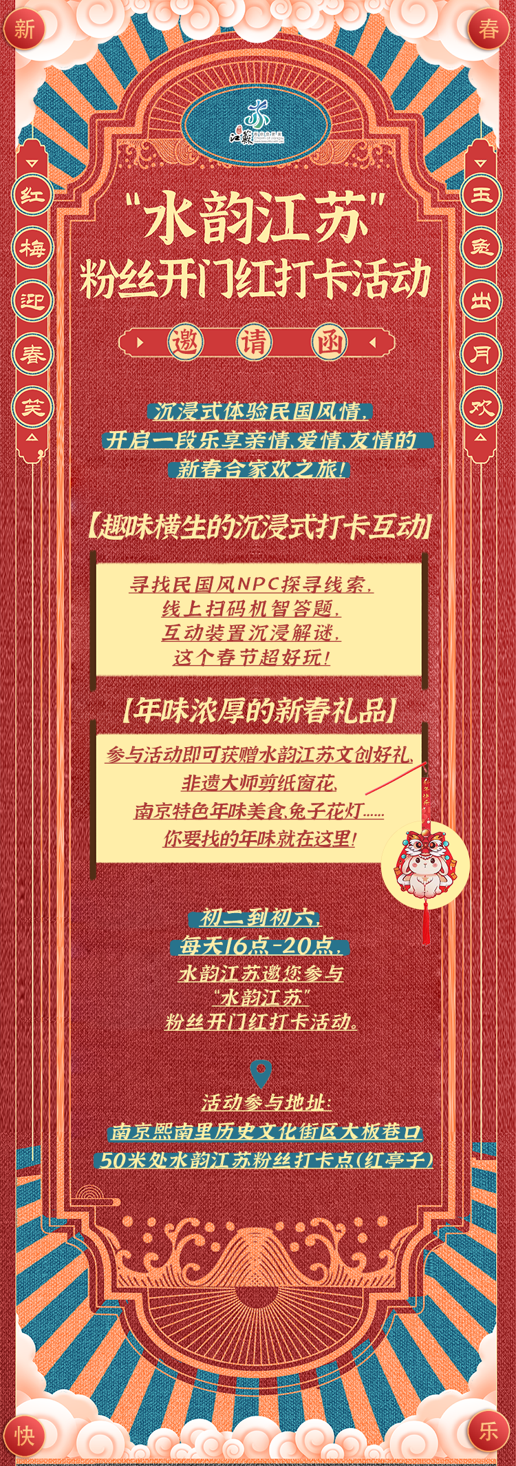 “水韵江苏”粉丝开门红打卡活动一直持续到大年初五(1月26日),赶紧去南京熙南里打卡吧!