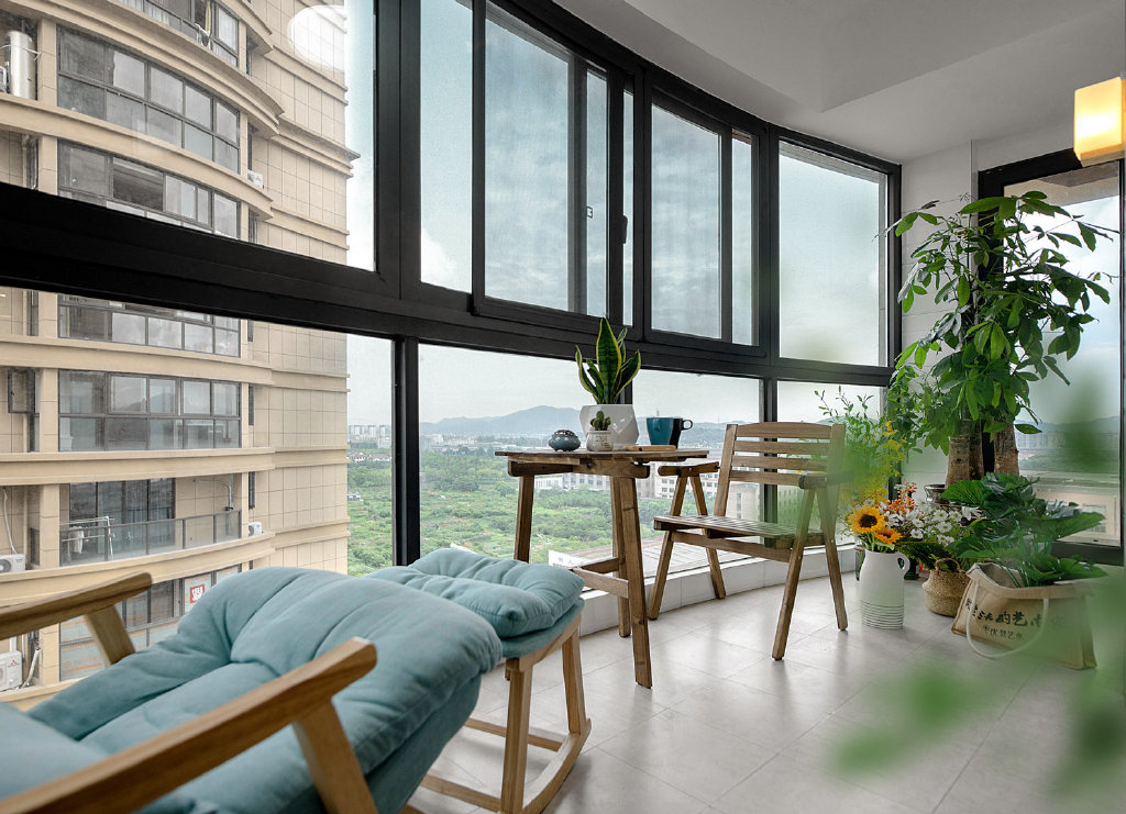 因业主家有两个阳台,一个就设计成了休闲阳台,在烈日炎炎的日子里在阳台里抽根小烟,喝杯小茶都是非常舒适的。