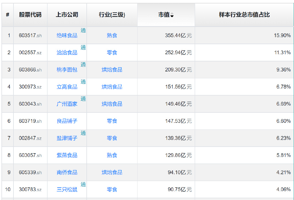 根据申万二级行业分类可以看到在休闲食品分类,按当前市值排名可以看到洽洽食品、良品铺子、三只松鼠属于休闲食品领域的佼佼者。
