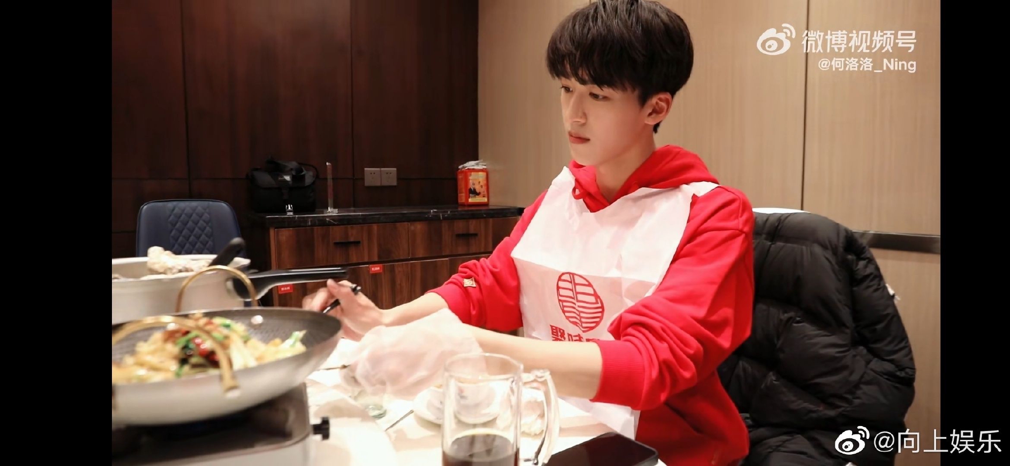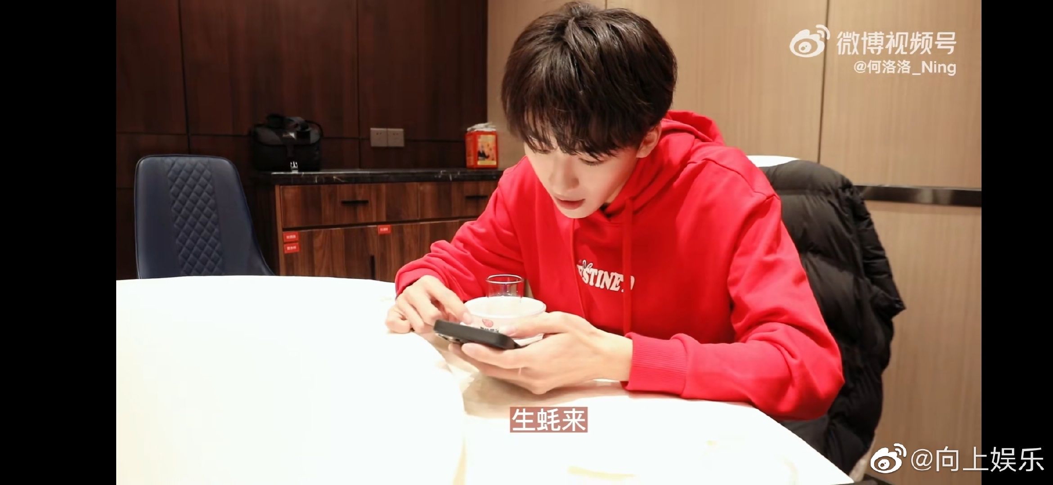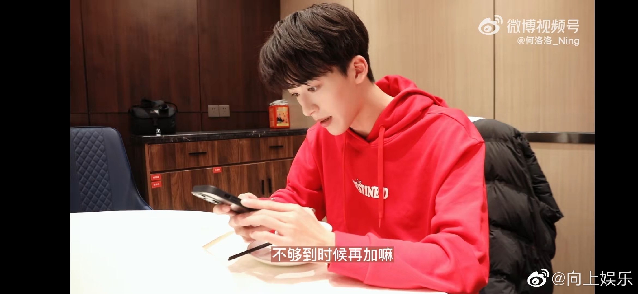 红色连帽卫衣造型休闲风好帅呀!专注于吃饭的徐一宁一大口!