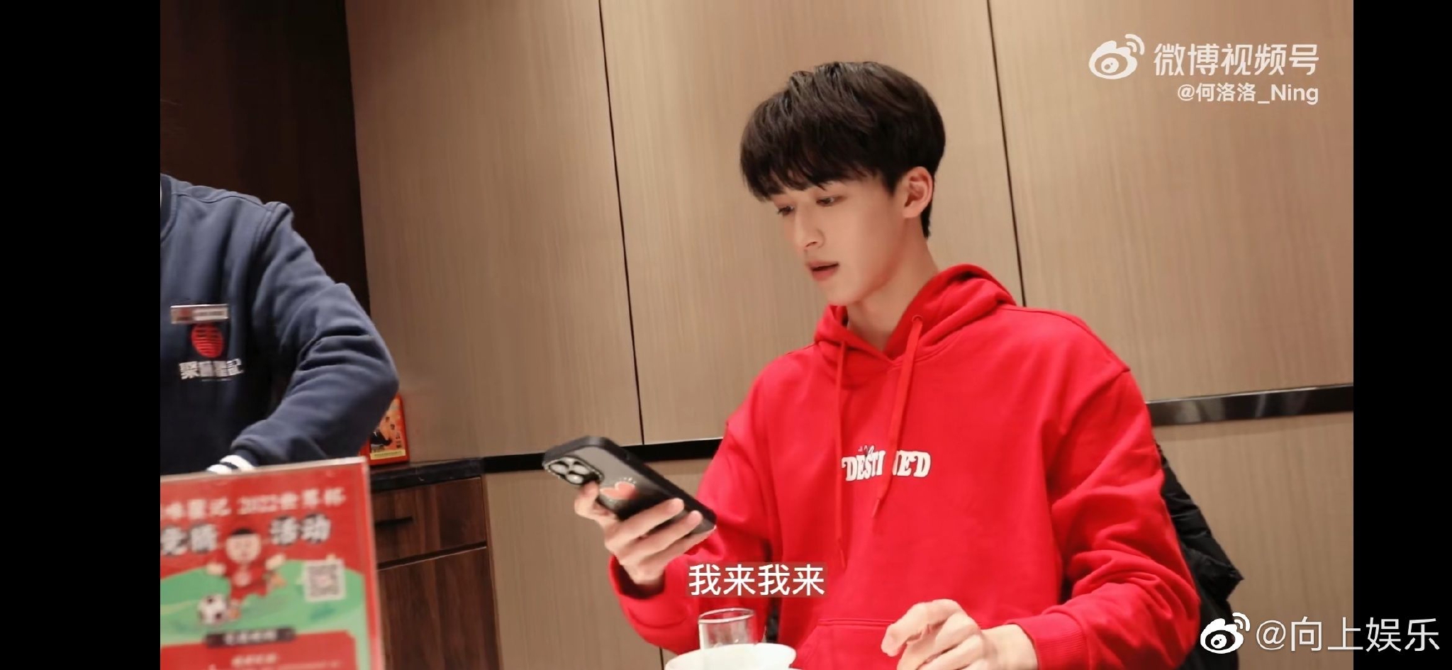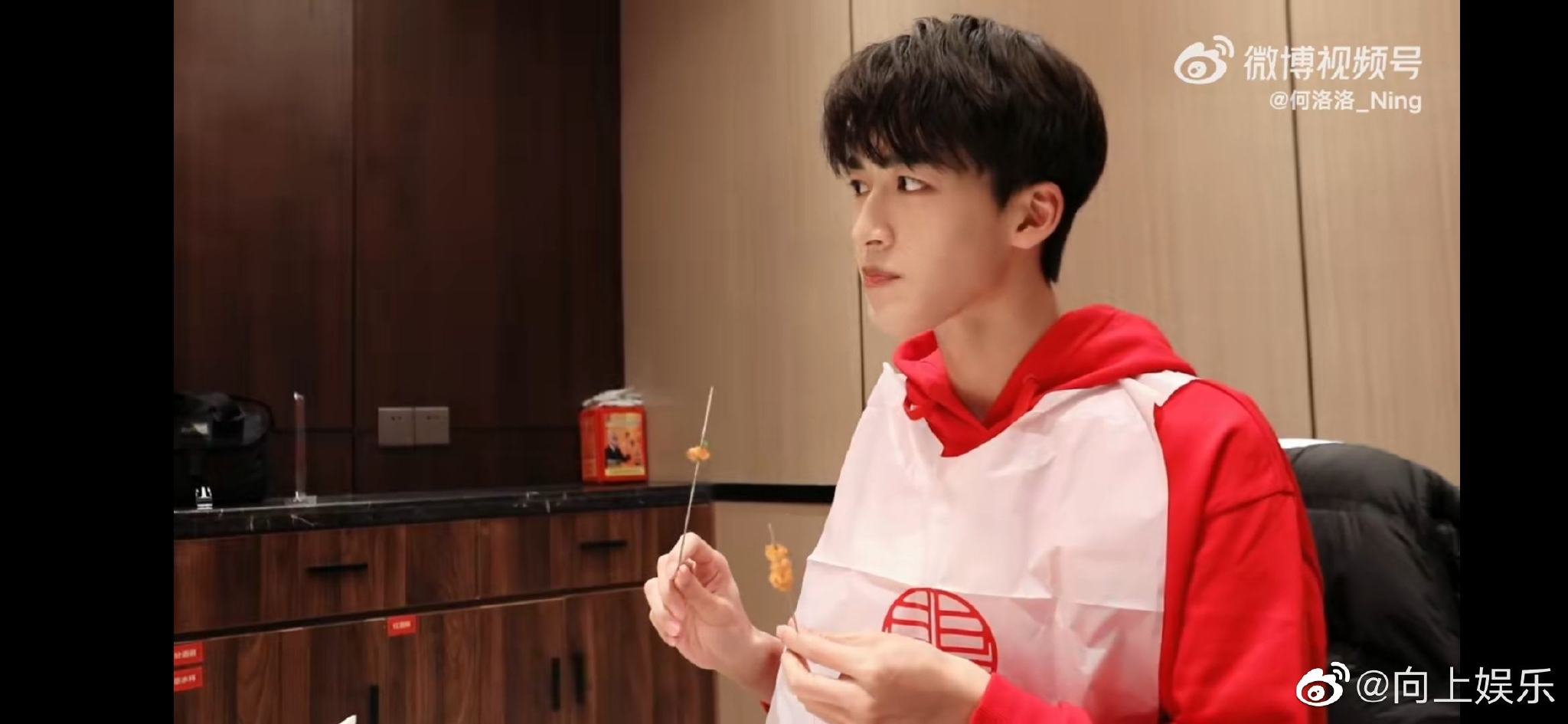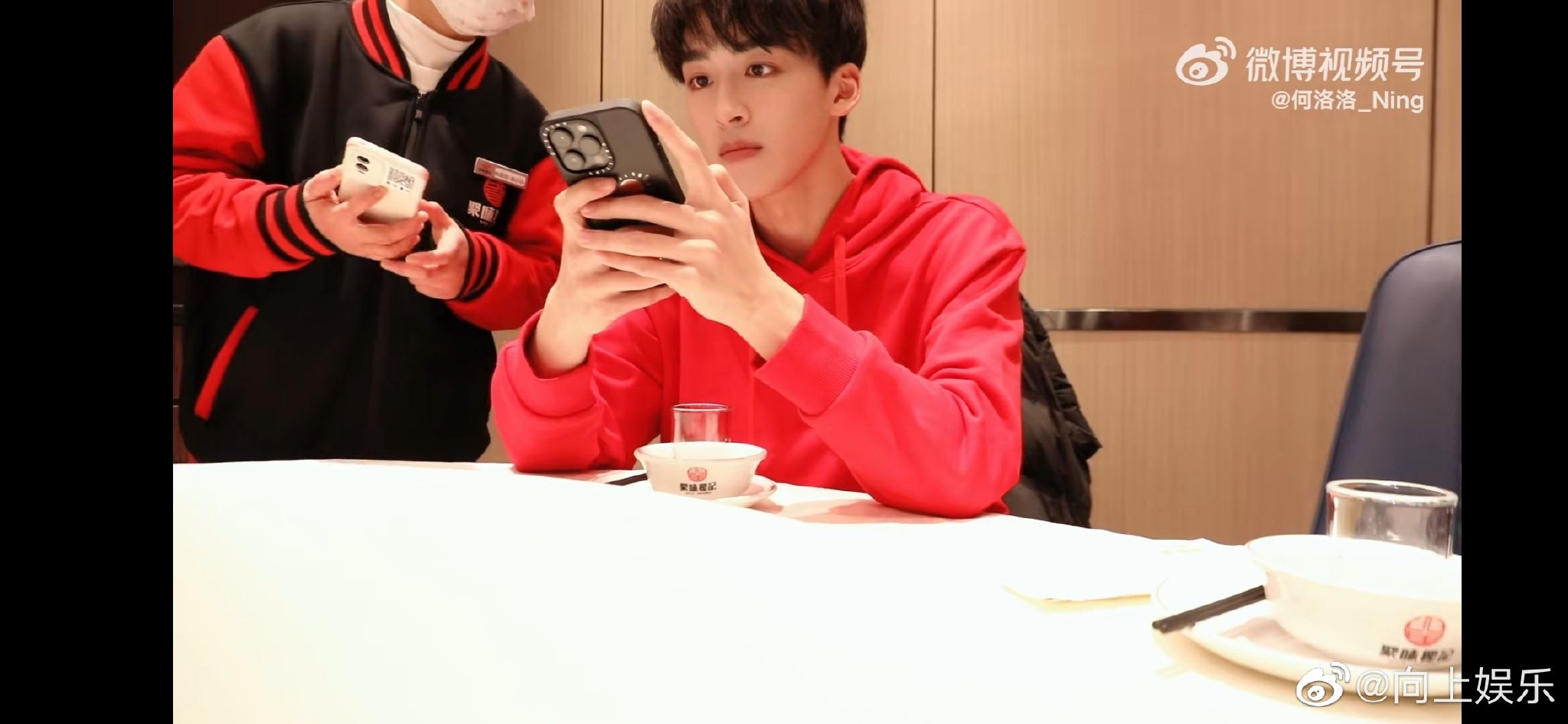 红色连帽卫衣造型休闲风好帅呀!专注于吃饭的徐一宁一大口!