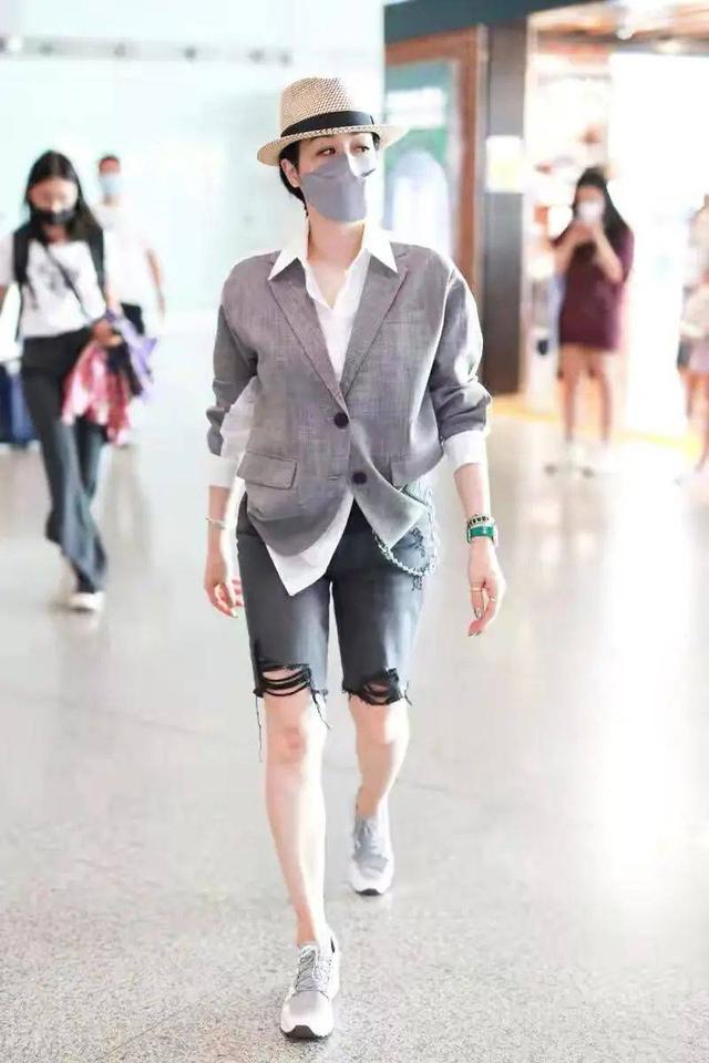 西装的搭配对于很多人来说还是蛮常见的,但在钟丽缇的机场造型中,她却将西装穿出了不同的风格,比如下面这一件灰色的西装,搭配上白色衬衫,用叠穿来展现出了层次感。并且还在下半身搭配了一条五分的牛仔短裤,更是能凸显出独特的气场,时尚度超高。