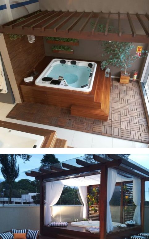 对了,这里有两点建议:1、不仅仅是可以在院子内装廊架泳池,像是阳台和露台,如果空间允许的话,也是可以充分利用起来创造个休闲娱乐区的。