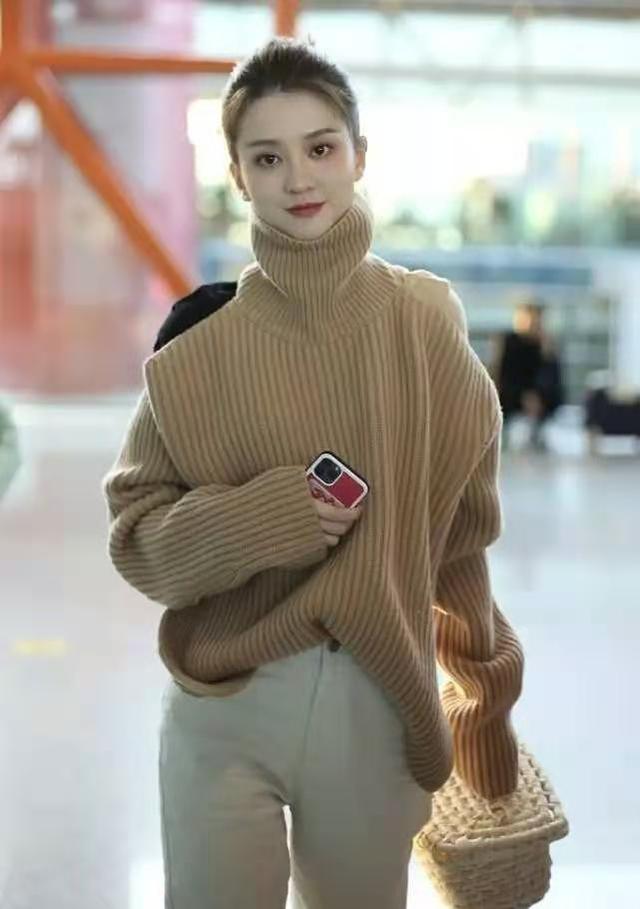 像毛衣这样十分常见的单品,想要穿出独特感,必须选择个性款,款式越个性,就越时髦,就拿乔欣这件高领毛衣,整体时尚感很强。即使搭配普普通通的白裤子,也不显俗气。