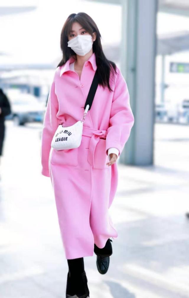 系带这么一系,纤细的腰身就被勾勒出来,在前凸后翘的身材衬托下,粉大衣不仅看起来没那么少女了,还格外有女人味。风格的转变,还给人一种眼前一亮的感觉。