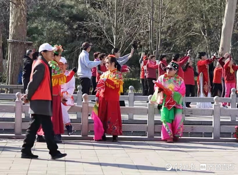 百花公园真热闹,市民以各种方式休闲娱乐,享受春天