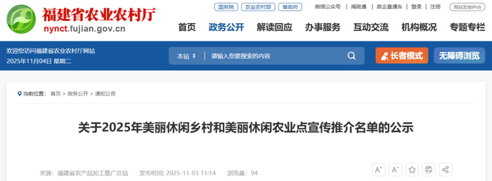 根据《福建省农业农村厅关于开展2025年福建省美丽休闲乡村和美丽休闲农业点推介工作的通知》(闽农加函〔2025〕292号)要求,经主体申请,市、县(区)及平潭综合实验区农业农村局推荐,福建省农业农村厅遴选了福州市罗源县起步镇桂林村等45个美丽休闲乡村、福建罗源畲乡里旅游有限公司等14个美丽休闲农业点,拟予以宣传推介。现将名单公示,公示时间为11月3日至11月7日。如有异议,请在公示期内向福建省农产品加工推广总站反映。