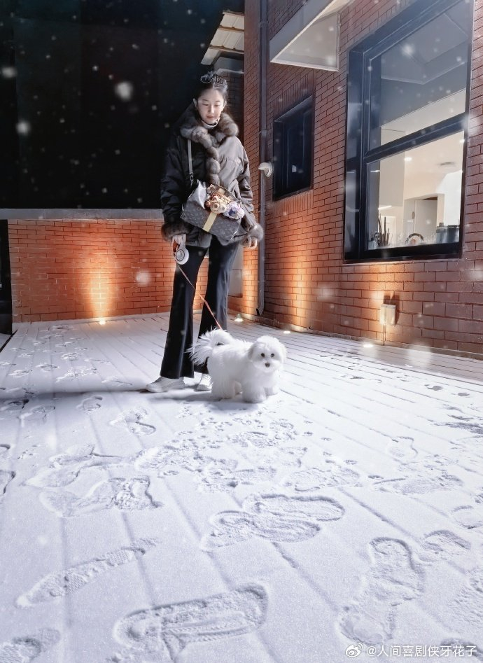 #刘亦菲遛狗素颜##刘亦菲初雪遛狗#素颜也能美出圈!刘亦菲初雪遛雪白小狗,黑色休闲装,长发轻挽氛围感拉满。