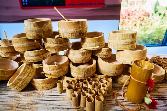 在这里可以看到村民用竹子制作的各种手工艺品和生活用具,大大小小的竹杯、竹碗、竹桶等带着哈尼族的民族特色,凑近了还可以闻到淡淡竹香,非常适合当伴手礼。