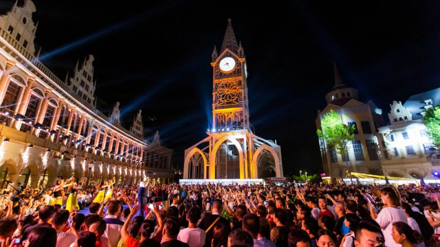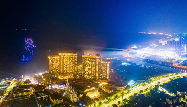 街区夜景璀璨,欧式建筑群披上霓虹,光影倒映在潟湖中摇曳生姿。现代浪漫与德式风情在夜色中交融,宛如童话之境。