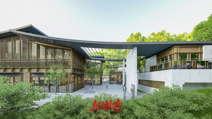 融合广场配套服务设施效果图建筑边沿的部分不时有几棵大树冒出。顺自然,顺地势。据湖南省建筑设计院集团股份有限公司相关负责人介绍,项目在设计时,就考虑尽量维持这里的花草树木本来的模样,无论是房屋还是连廊,都尽量地与自然相融合。在施工时,两家承建单位长沙城市发展集团有限公司、湖南教建集团有限公司也严格按照设计思路执行,合力让市民游客感受自然和人文融合的美。